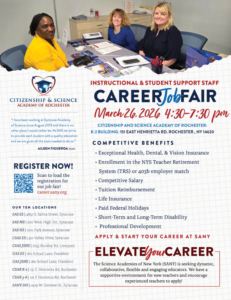 Citizen & Science Academy of Rochester – Instructional & Student Support Staff Career Job Fair