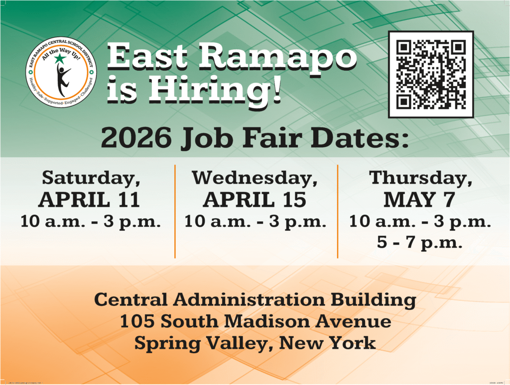 Looking for a rewarding career where you can find purpose, make a meaningful impact and grow professionally? Join the East Ramapo Central School District at one of our upcoming Job Fairs!